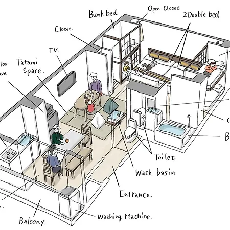 客人也可使用在每间厨房配备的微波炉,电热水壶和炉灶. 走路只需5分钟即可以到达上野站火车站.